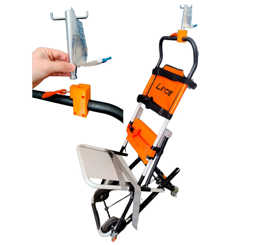 Garante praticidade e segurança para aqueles que necessitam do uso contínuo de oxigênio mesmo durante o percurso de evacuação.